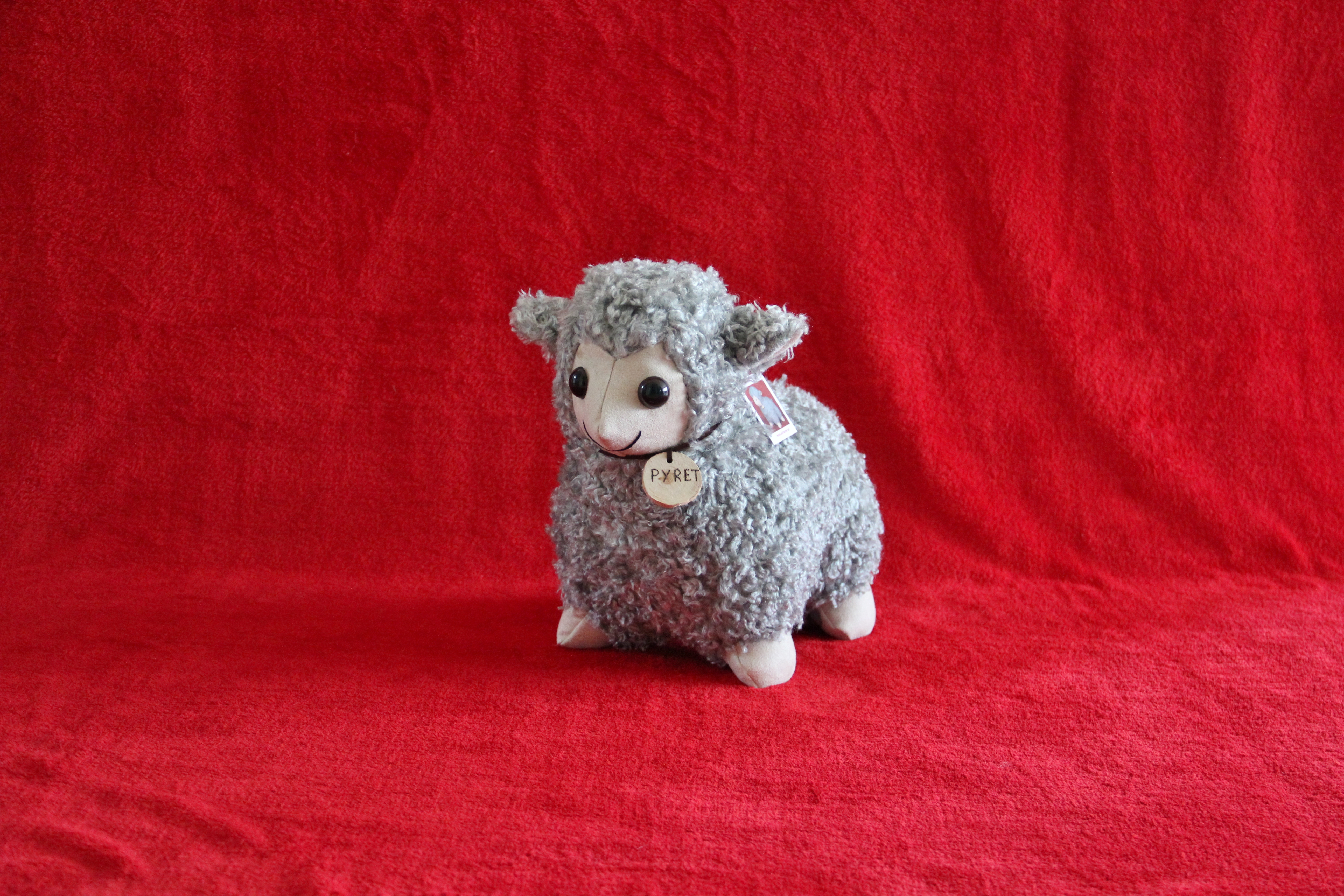 är tillverkat i syntetpäls. Nos och fötter är i mockatyg och fåren är välstoppade med syntetvadd.