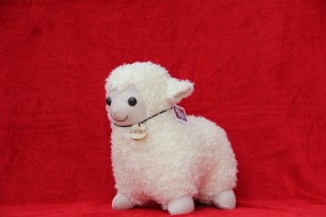är tillverkat i syntetpäls. Nos och fötter är i mockatyg och fåren är välstoppade med syntetvadd.