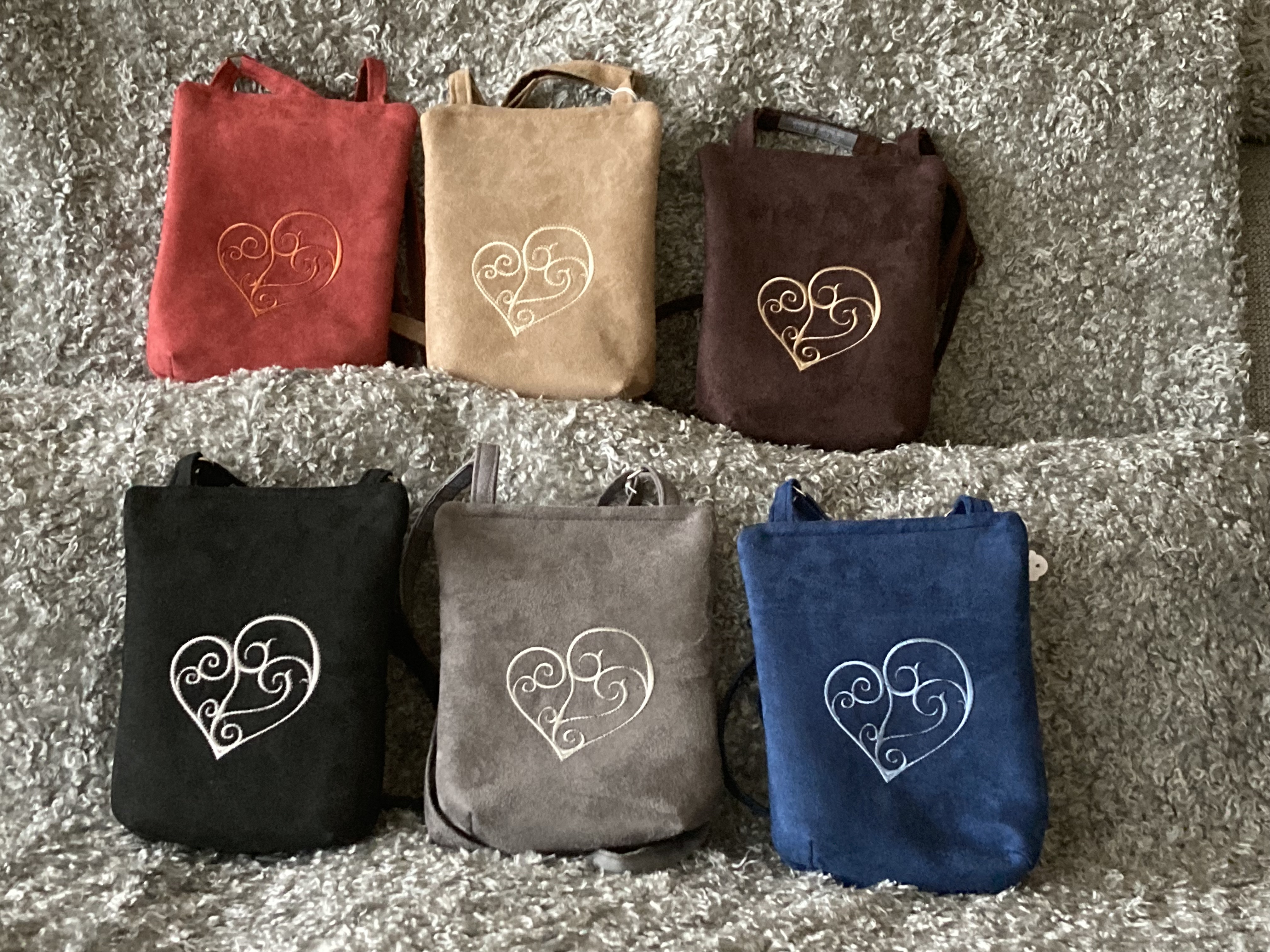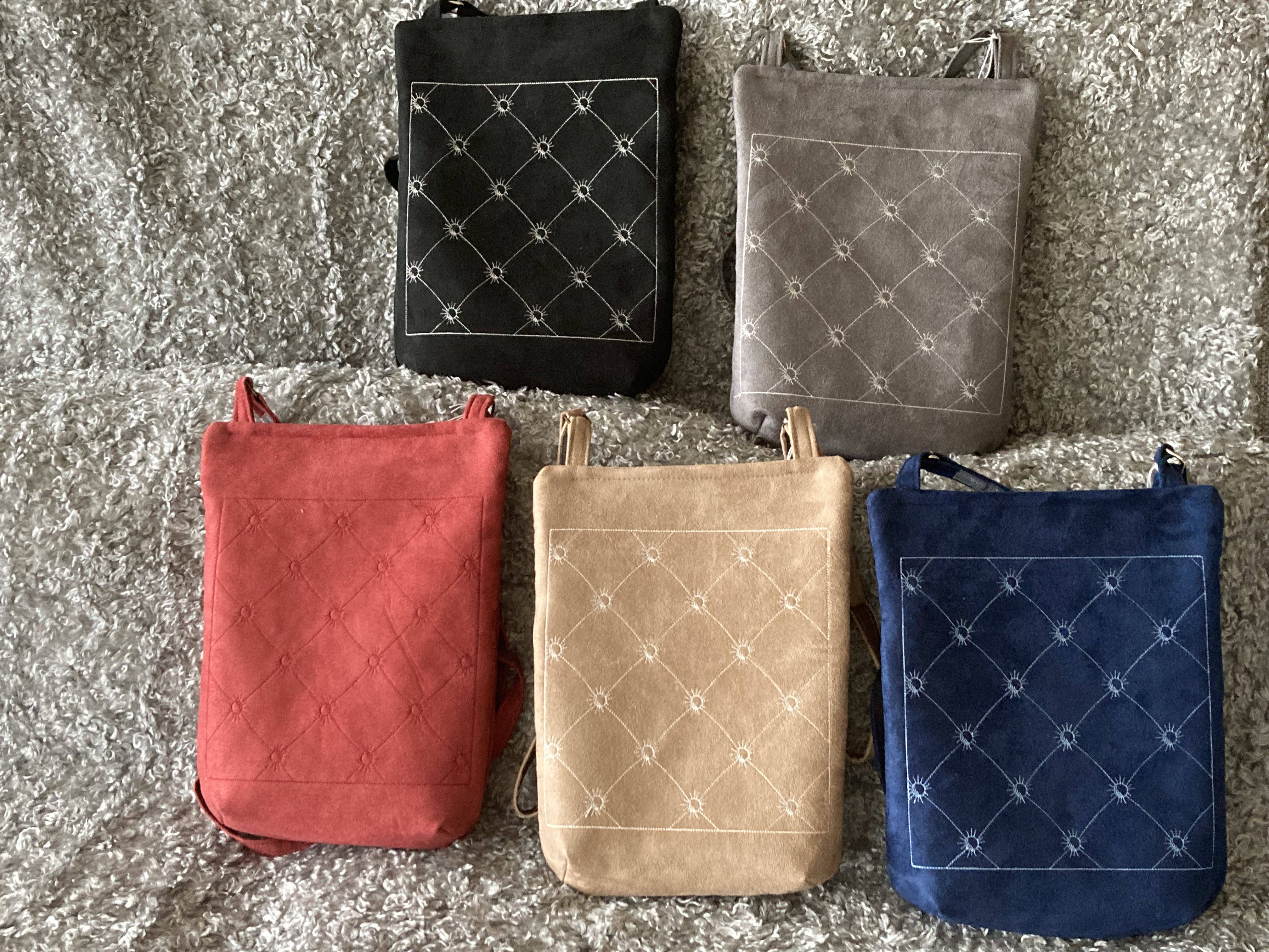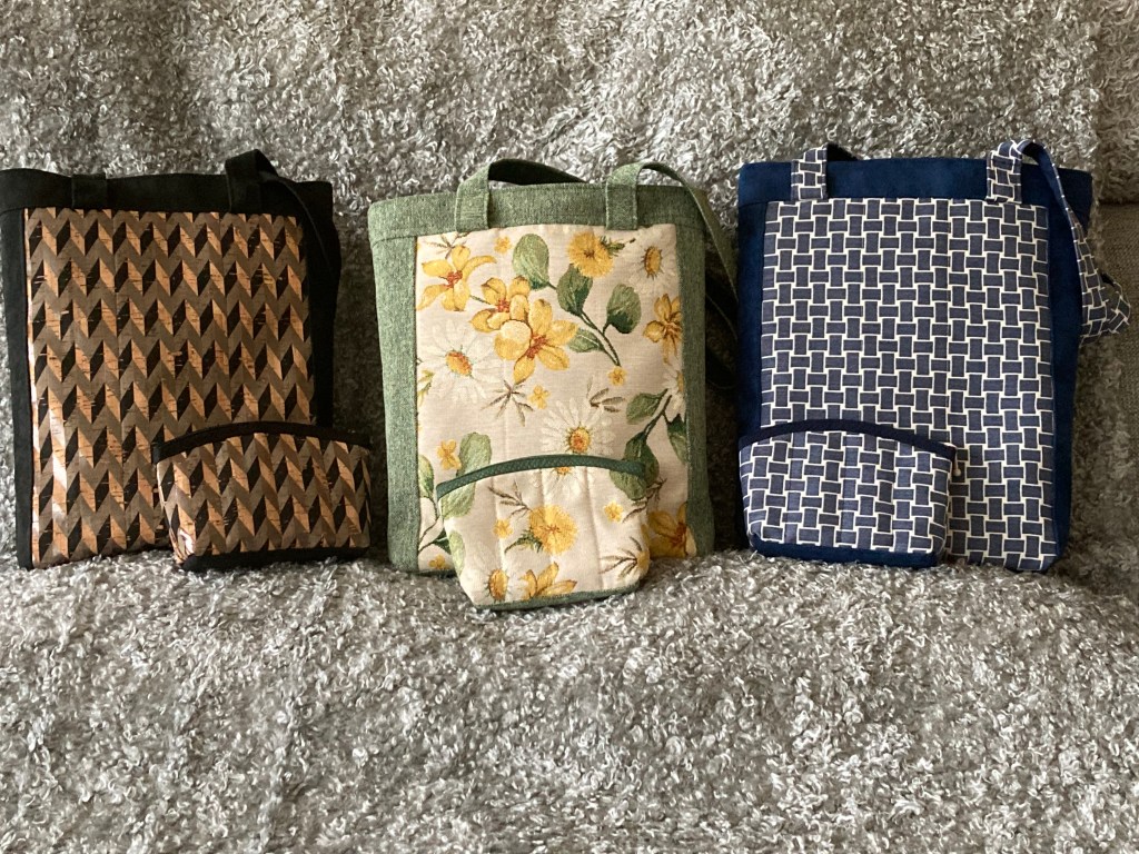 Ett urval av mina väskor som sys i många olika tyger.